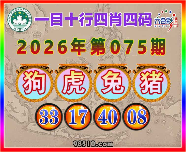 075期:〖一目十行〗 四肖四码【狗虎兔猪】【33.17.40.08】开:00准