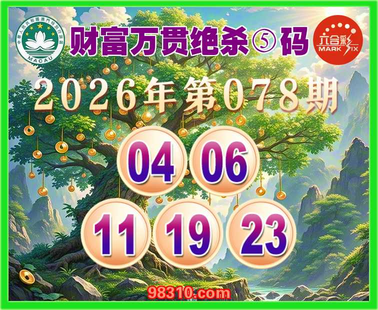 078期:《财富万贯》 绝杀⑤码【04.06.11.19.23】开:鸡46准验证上榜