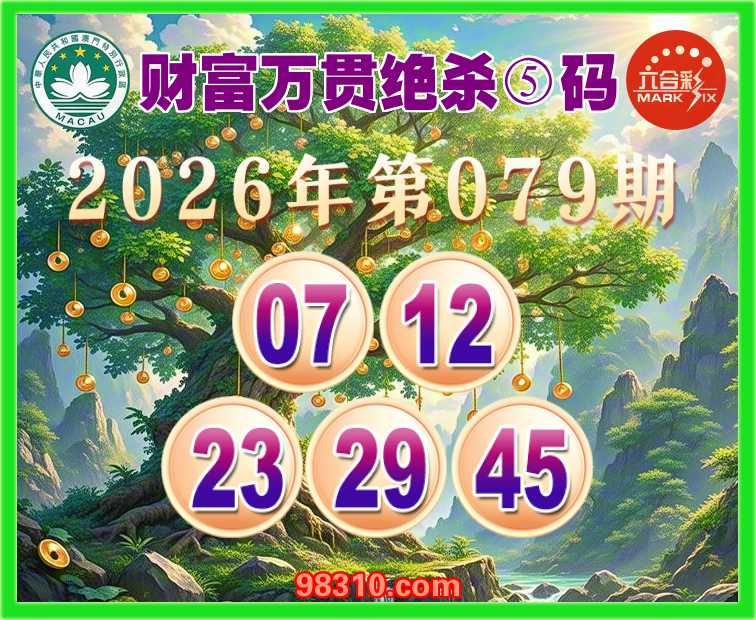 079期:《财富万贯》 绝杀⑤码【07.12.23.29.45】开:00准