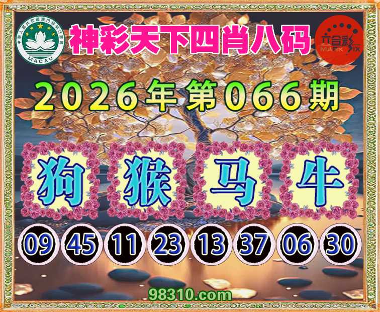 066期:《神彩天下》 四肖八码【狗猴牛】开:马37