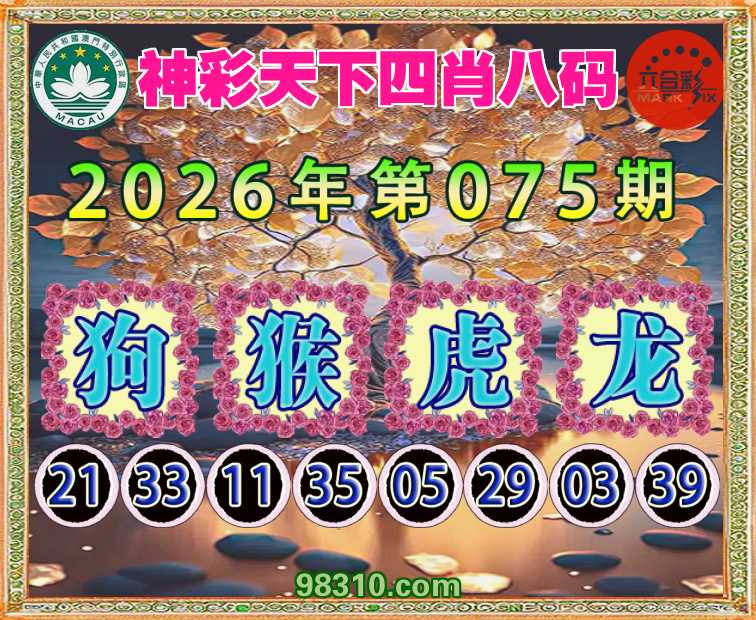 075期:《神彩天下》 四肖八码猴虎龙】开:狗33