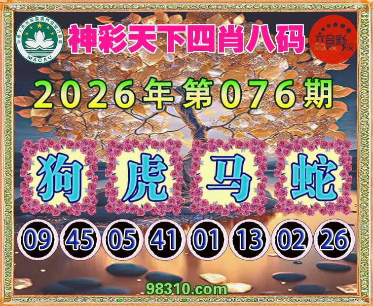 076期:《神彩天下》 四肖八码【狗虎马】开:蛇02